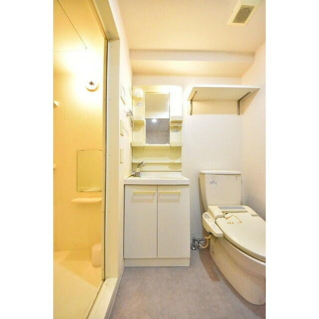 コンパクトながらも使い勝手を重視した設計になっています。バスルームとトイレが独立しているため、脱衣スペースとしてしっかりと確保されており、入浴前後の身支度をゆったりと行うことができます。内装は明るい色調で清潔感があり、毎日の生活に快適さを感じられる空間です。限られた面積の中でも機能性と快適性を両立させた、シンプルで整った脱衣所となっています。