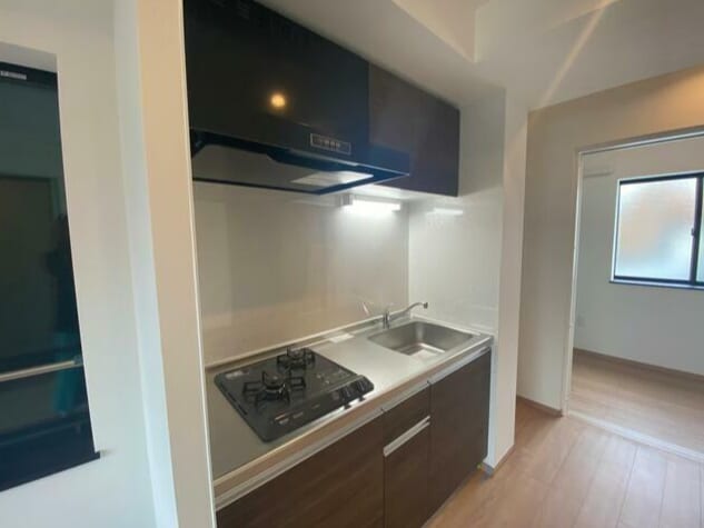 こちらのキッチンには、魚焼きグリル付きの2口ガスコンロを完備しており、本格的な調理も楽しめます。
