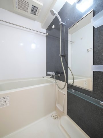 こちらのバスルームは、スタイリッシュで清潔感のあるデザインが特徴の使いやすいユニットバスです。