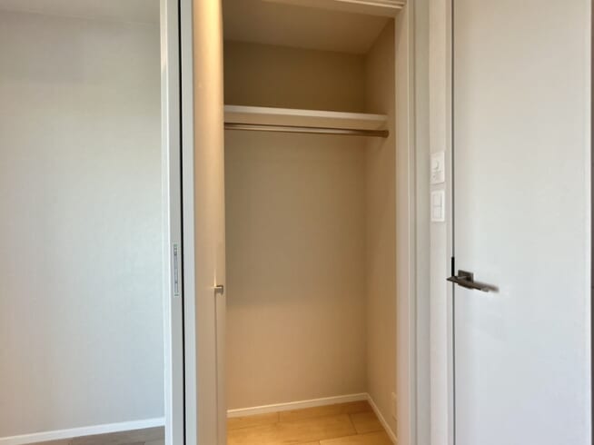 収納は奥行きのあるクローゼットを備えており、衣類しっかり整理できる使い勝手の良いスペースです。扉付きで見た目もすっきり保てるため、お部屋全体を広く見せられるのも魅力。シンプルな構造ながら収納力が高く、一人暮らしの荷物量であれば十分余裕を持って収められます。生活感を隠しつつ、快適に暮らせる嬉しい収納環境です