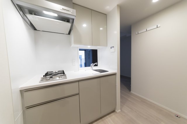 こちらのキッチンには、2口ガスコンロを完備しており、本格的な調理も楽しめます。