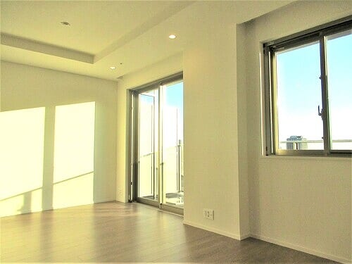 リビングは、約16.1帖というゆとりある広さがあり、ソファやダイニングテーブルを置いても圧迫感がなく、レイアウトの自由度が高いのが特徴です。9.15㎡の広々としたバルコニーに面した大きな窓からは自然光が入りやすく、明るく開放的な雰囲気をつくり出します。