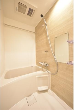 鏡や収納棚も備え付けられており、シャンプー類やバス用品の置き場にも困りません。
