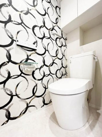 さらに、上部には収納棚を設け、トイレットペーパーや掃除用品のストックもスマートに収納可能。細部まで使い勝手に配慮された、快適性の高いトイレ空間です。