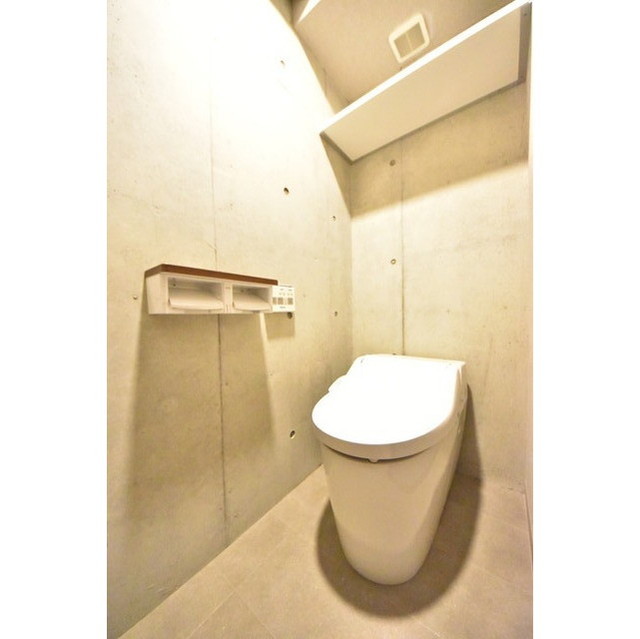 トイレも居室各所と同様の雰囲気と清潔感を感じられる空間となっております。トイレ自体も最新式の設備が導入されており、操作盤で簡単にコントロールが可能となっております。トイレ上部にも収納があり、シンプルで使い易く、これ以上ないデザイン性のあるトイレ空間となります。
