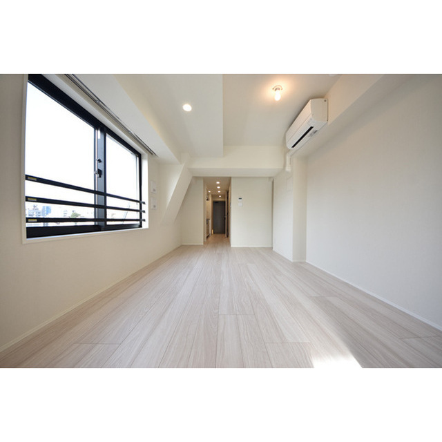 広いLDKは、白基調の壁紙とオフホワイトのフローリングで視覚的な柔らかさが演出されています。また、居室空間の手前側奥には洋室が並び、スライドドアを開けることでスペースが生まれ更なる解放感ある居室へと変容いたします。備え付けの証明もダウンライトが採用されている為、天井からの圧迫感もなく心地よさと統一感を感じられる要素として一役買っております。