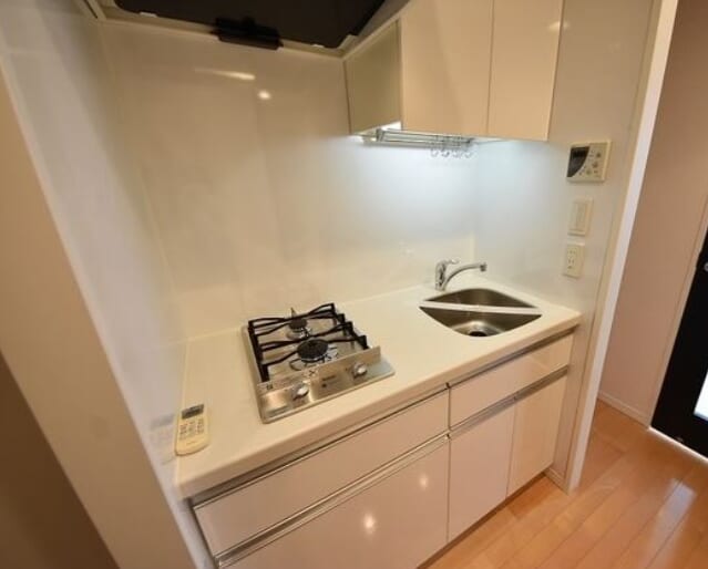 「パークアクシス渋谷桜丘ウエスト」のキッチンは、お料理に集中できる独立型の設計を採用しており、リビングと空間を分けることで調理中の匂いや煙が居室に移りにくく、常に清潔感のある空間を保てます。機能的な2口ガスコンロを完備したコンパクトながらも使い勝手の良いスペースは、効率的な家事をサポート。自炊の時間を愉しみつつ、スマートな都会のライフスタイルを維持できる、機能美を追求したキッチン空間です。