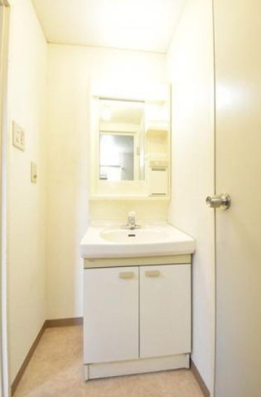 脱衣スペースには独立洗面台を設置しており、朝の身支度や帰宅後の手洗いもスムーズに行えます。洗面ボウルまわりには小物を置けるスペースもあり、日用品を整理しやすい使い勝手の良い設計です。バスルームとしっかり区分された脱衣空間となっているため、プライバシーにも配慮されています。水回りが機能的にまとまっており、毎日の生活を快適にサポートしてくれる空間です。