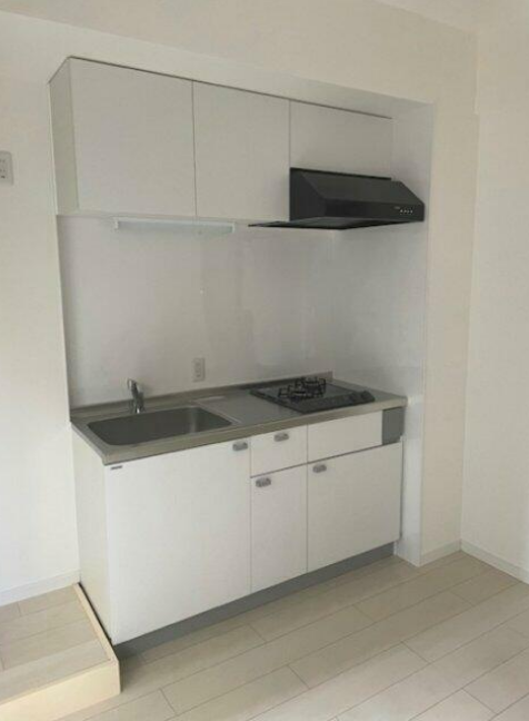 キッチンはすべて清潔なホワイトを基調としたシステムキッチンで、お部屋のサイズに合わせた機能的な設計が施されています。あるお部屋では、高級感のあるブラウンの鏡面パネルに3口ガスコンロとグリル、広い作業スペース、そしてレンジフード上まで続く豊富な収納が備わっています。別のお部屋では、2口コンロとフラットな扉がスタイリッシュなキッチンや、コンパクトながら一人暮らしに十分な機能を持つシンプルなキッチンなど、住む人のスタイルに合わせて選べるバリエーションが魅力です。