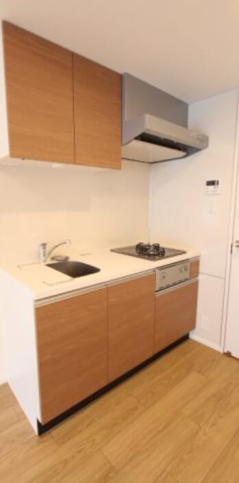 リビングと調和するキッチンスペースは、デザイン性と機能性を兼ね備えた使いやすいシステムキッチンを採用しています。コンロや作業スペースもしっかり確保されており、日々の料理も快適に行うことができます。シンクや調理スペースもバランスよく設計されているため、食材の準備から盛り付け、後片付けまでスムーズに行えます。収納スペースも備わっており、キッチン周りをすっきりと保つことができます。毎日の料理が楽しくなる、使い勝手の良いキッチン空間となっています。