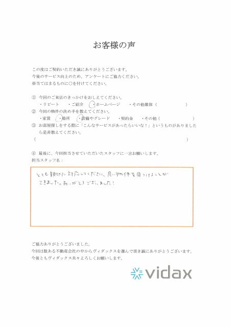 とても親切に対応してくださり、良い物件を見つけることができました。