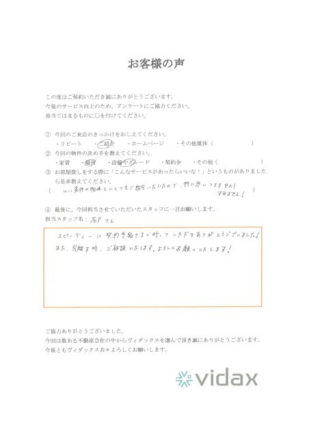スピーディーに契約手続きまでいっていただきありがとうございました。