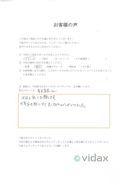 親切に探していただいて合う物件をみつけて下さってとても満足しています。