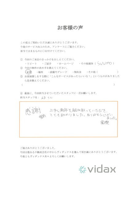 おふたりのご条件に合ったお部屋をご紹介できとても良かったです。