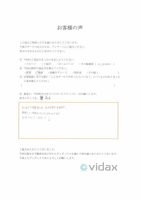 たくさんお店に足を運んでいただいたおかげで、最終的に良い物件が見つかり安心しております♪