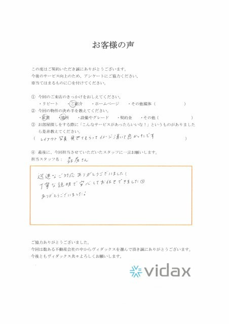 ご紹介でまた声をかけていただき、無事鍵渡しまで終えられてホッとしております◎