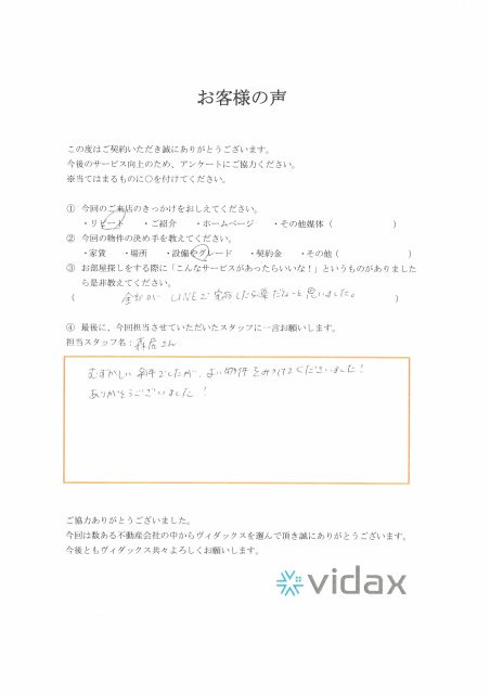 難しい条件でしたが、よい物件を見つけてくださいました!