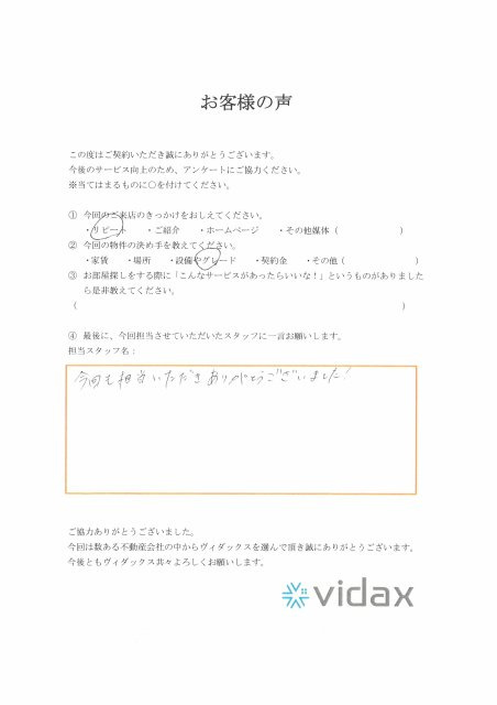 広さ、内装、日当たり、全てが完璧だと思いました(^^)