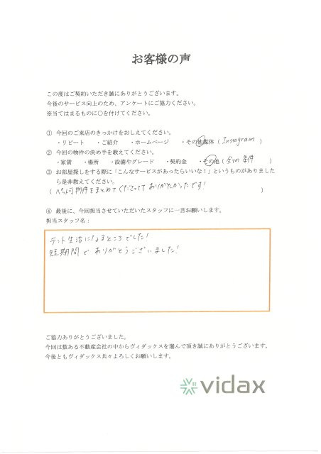 この度は数ある不動産会社の中からヴィダックスを選んで頂き誠にありがとうございました!