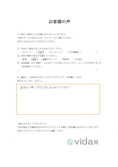最後まで丁寧にご対応頂きありがとうございました!