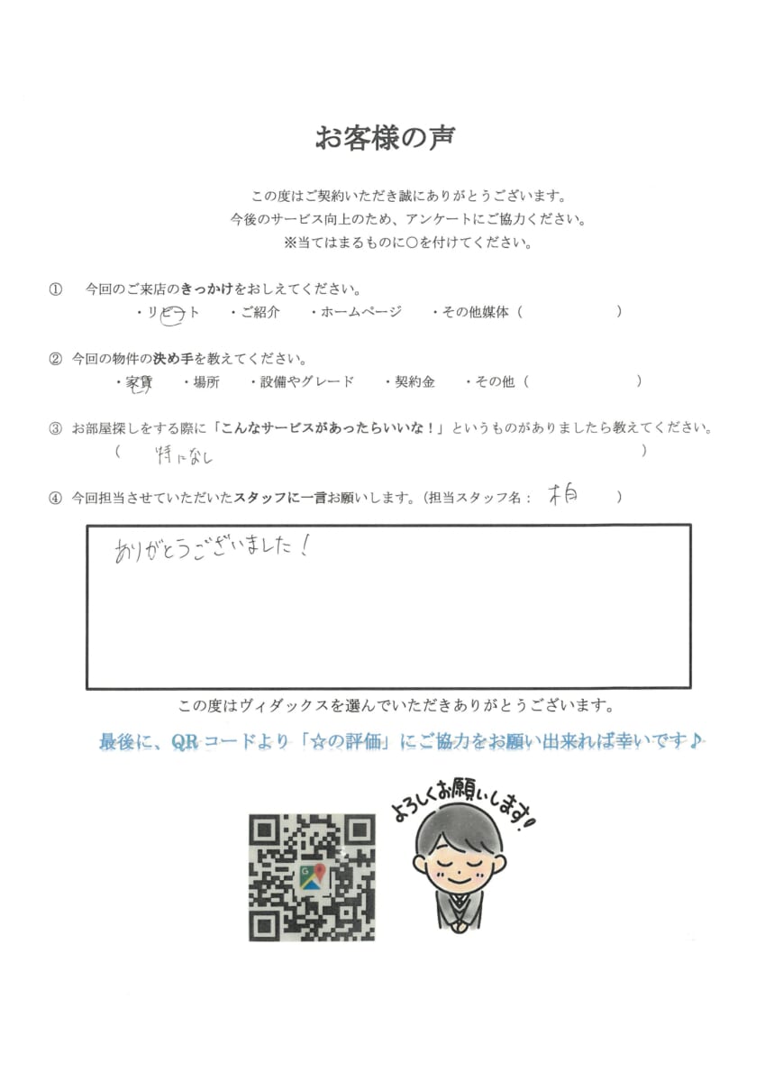 T・Y様 2025 11/19 お客様の声 2025年11月19日 T・Y様 ありがとうございました! 担当者:渋谷店 柏 侑衣 この度はご契約ありがとうございました!パートナー様との新生活楽しみですね^^また何かありましたらご連絡お待ちしております! お客様の声 よかったらシェアしてね! URLをコピーしました! I・Y様 N・K様 この記事を書いた人 株式会社ヴィダックス 株式会社ヴィダックスの編集メンバーが不定期で更新します。不動産界隈の最新ニュース・物件更新情報・株式会社ヴィダックスからのお知らせやお部屋探しに役立つ情報をわかりやすく紹介します! 関連記事 T・T様 2025年11月19日 U・E様 2025年11月19日 H・H様 / H・A様 2025年11月19日 アーティスト:4s4ki様 2025年11月19日 N・K様 2025年11月19日 K・Y様 2025年11月19日 T・M様 2025年11月19日 K・C様 / K・Y様 2025年11月19日