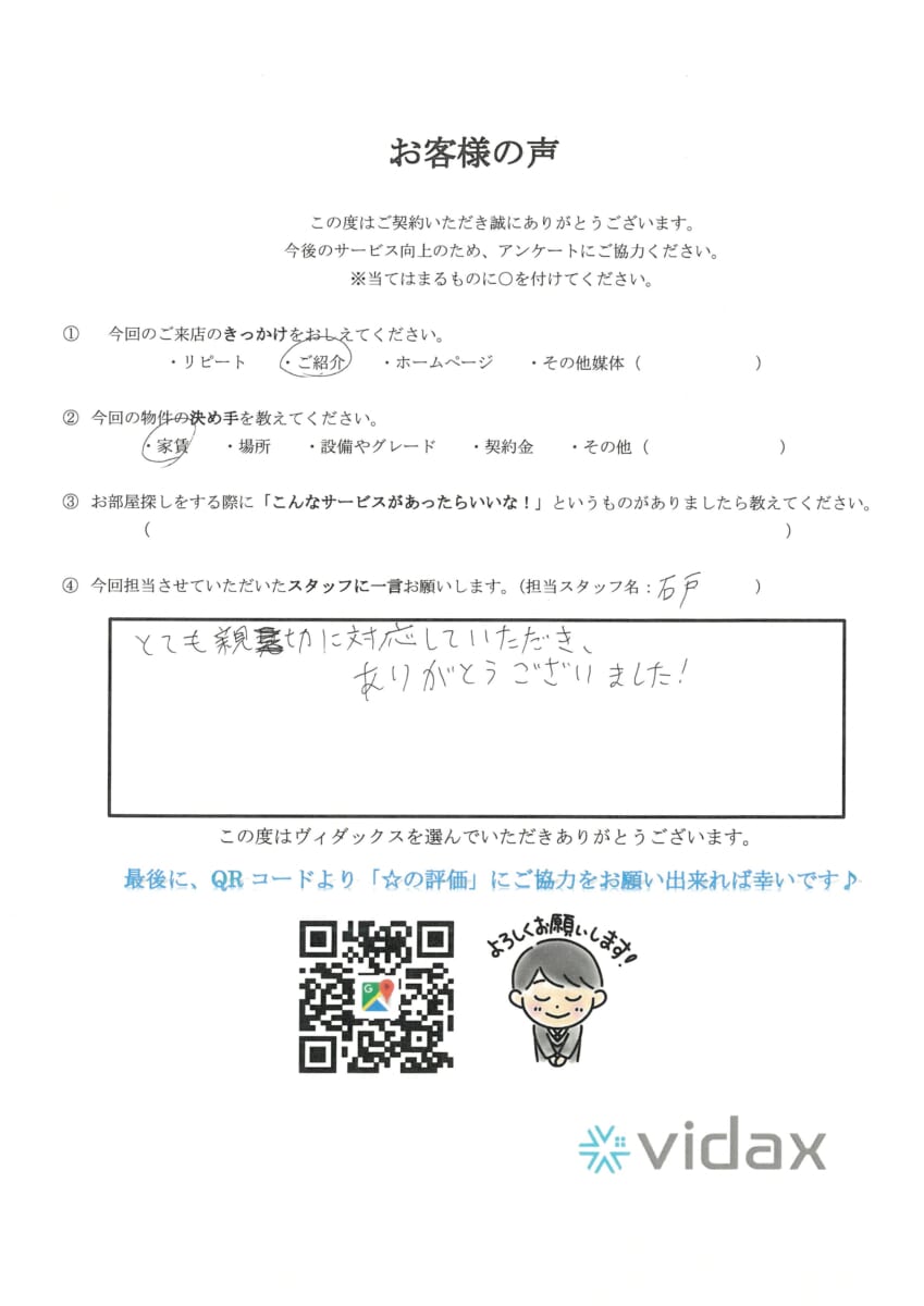 Kさんの迅速なご対応やご連絡のおかげでスムーズに契約手続きまで進めることが出来ました。
