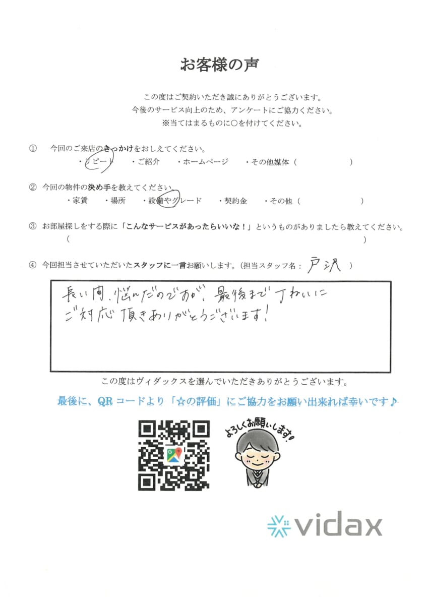 長い間、悩んだのですが、最後まで丁ねいにご対応頂きありがとうございます!