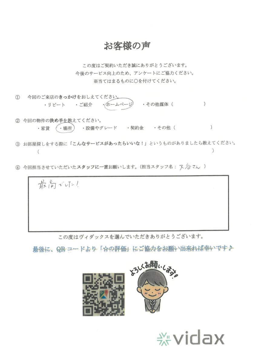お二人暮らしのスタート物件をご紹介出来て本当に良かったです!